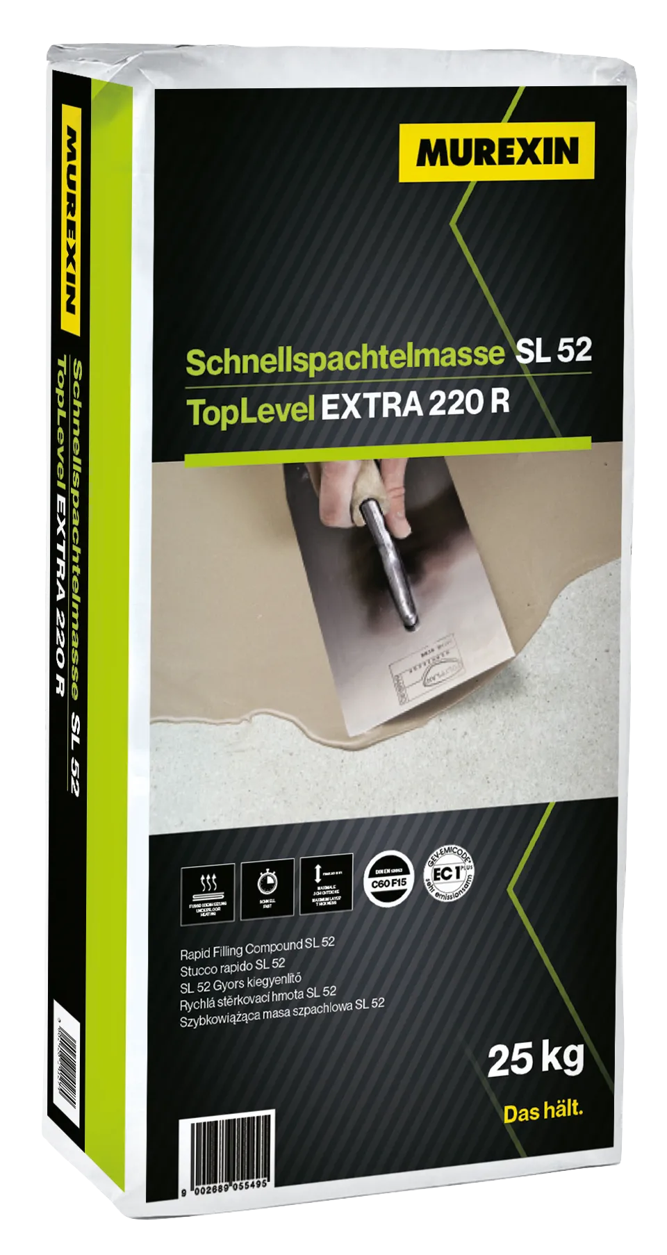 Sapa autonivelanta Murexin SL 52 este o sapa speciala cu intarire hidraulica, sub formă de pulbere, puternic aditivata, cu emisii reduse de praf, cu timp de uscare rapid, face posibila aplicarea covoarelor ulterioare după 90 minute.
